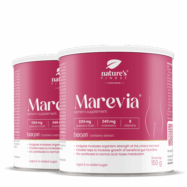 Tak. Marevia zawiera ekstrakt z żurawiny Exocyan™ oraz ekstrakt z korzenia rzewienia, który jest znany ze swoich niesamowitych korzyści dla układu moczowego. Rzewień wspomaga usuwanie wody z układu moczowego i ogólnie zwiększa siłę organizmu na poziomie układu moczowego.