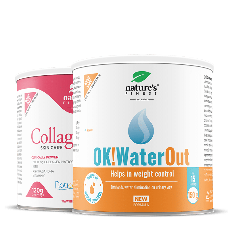 OK!WaterOut zawiera tylko starannie dobrane składniki, które pomagają pozbyć się nadmiaru wody z organizmu i szybciej schudnąć! Jest to kolagen klasy premium – zawiera opatentowaną formułę Naticol®, która jest najlepszym naturalnym źródłem kolagenu typu 1. Udowodniono, że kolagen SkinCare zwiększa elastyczność skóry i znacznie zmniejsza widoczność zmarszczek.