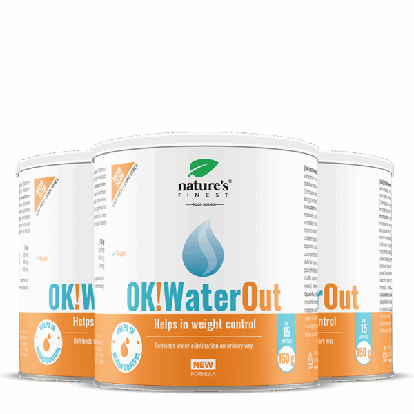OK!WaterOut dzięki swoim naturalnym składnikom wspiera usuwanie wody przez drogi moczowe³, a jednocześnie wspiera witalność organizmu¹ i pomaga utrzymać prawidłową masę ciała²