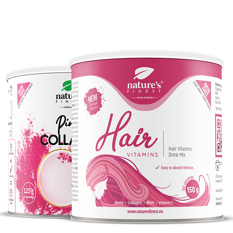 Hair Vitamins: Zalecana dzienna dawka to 5 g (1 miarka). Wymieszać w szklance wody i spożyć, gdy tylko proszek się rozpuści. W 5 g znajduje się 450 µg (900 % RWS) biotyny i 100 mg (125 % RWS) witaminy C.