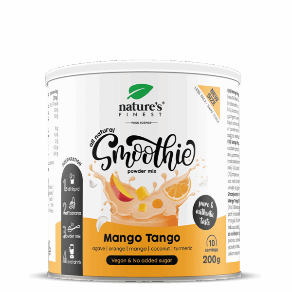 Zmiksuj 1 szklankę kawałków ananasa, 1 obraną pomarańczę i 1 szklankę wody z 2 łyżkami mieszanki smoothie. Przecedź i podawaj z lodem jako orzeźwiający sok tropikalny.