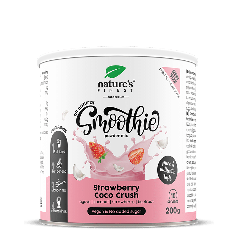 Po prostu weź szklankę, napełnij ją wodą lub mlekiem roślinnym, dodaj ulubioną mieszankę smoothie (2 łyżki stołowe) i pół banana, zmiksuj w blenderze i już!